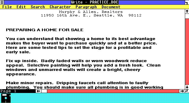 Windows 1.0仅仅实现了简单的图形界面,没有图标,没有程序分组,也没有实现真正的多任务。不管怎么说,从DOS到Windows都是一个跨越。