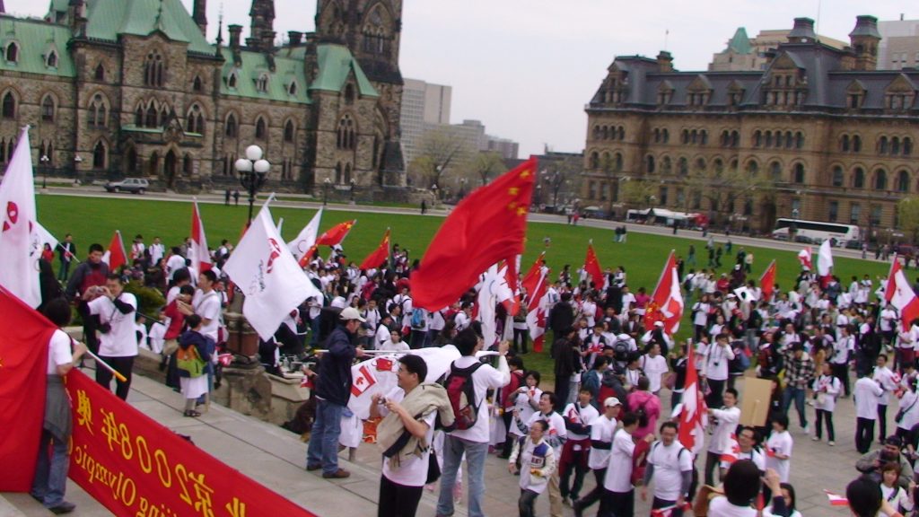 这次活动举办得比较成功。中英文的“声明”都有了,秩序也不错,没有乱七八糟的闹事分子。而且这次把北京奥运跟温哥华奥运联系起来,比较容易被加拿大人接受。条幅、T恤、国旗都比较到位。只有一点,我发现到场的学生们貌似没什么热情。唱《手牵手》和《红旗飘飘》的时候,大家比较放不开,手里的国旗也没有挥动起来。主持人也没有提醒一下。
